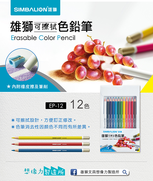 產品特色可擦拭色鉛筆不僅能於繪圖時修改擦拭,同時還能做為學習時重點標記或數學演練等多方位使用,結合色筆與鉛筆的優點,不僅書寫方便還能依照心情變換您想要的顏色產品說明一般繪畫、塗鴉使用,是接觸美術時,最常使用的繪圖用具,不僅能於繪圖時修改擦拭,同時還能做為學習時重點標記或數學演練等多方位使用