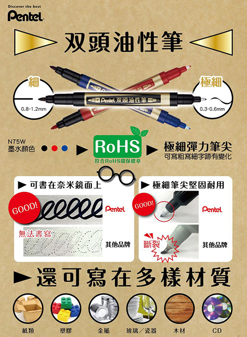 Pentel 飛龍牌 N75W 雙頭油性筆