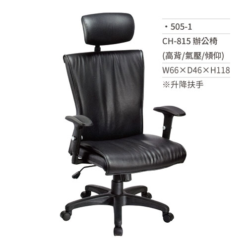 主管辦公椅(高背/升降扶手/氣壓式+傾仰)505-1 W66xD46xH118