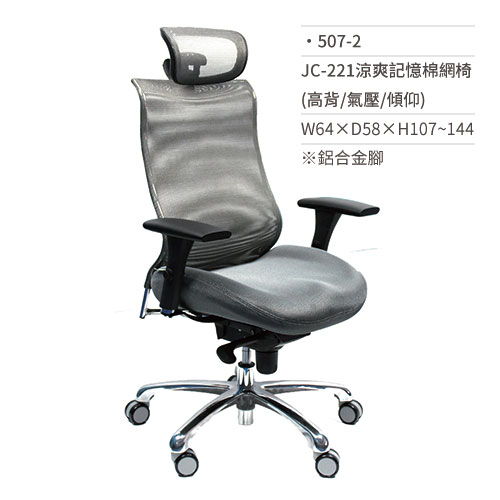 涼爽記憶棉網椅/辦公椅(高背/有扶手/鋁合金腳/氣壓+傾仰)507-2 W64xD58xH107~144