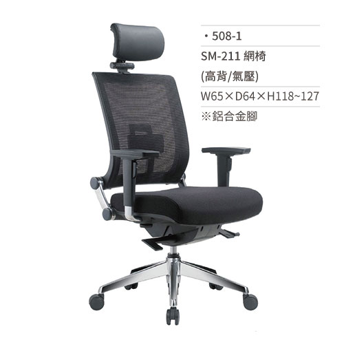 高級網椅/辦公椅(高背/有扶手/鋁合金腳/氣壓)508-1 W65xD64xH118~127