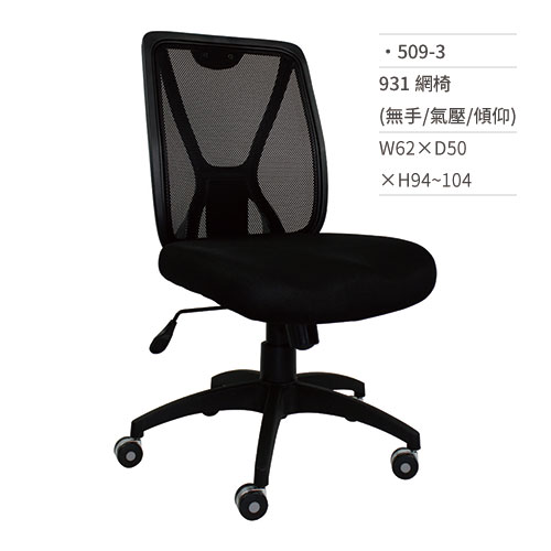 高級網椅/辦公椅(無扶手/氣壓+傾仰)509-3 W62×D50×H94~104