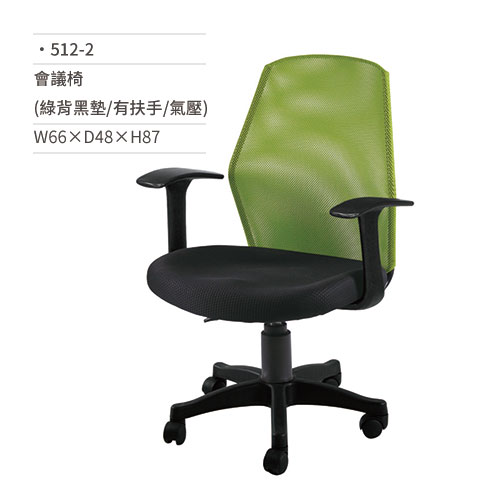 高級網椅/會議椅(綠背黑墊/有扶手/氣壓)512-2 W66×D48×H87
