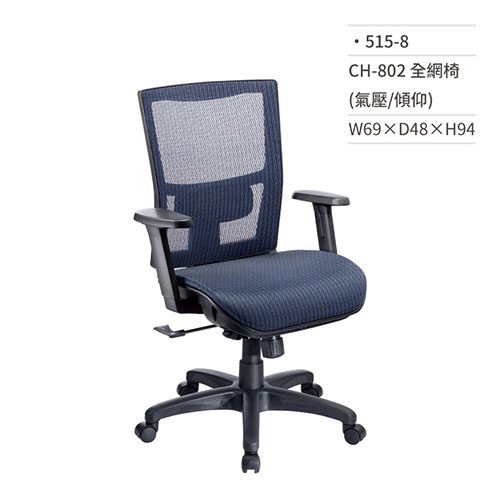 高級網椅/辦公椅(有扶手/氣壓+傾仰)515-8 W69×D48×H94