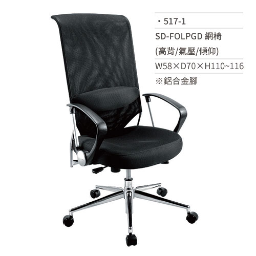 高級網椅/辦公椅(高背/有扶手/氣壓+傾仰)517-1 W58×D70×H110~116