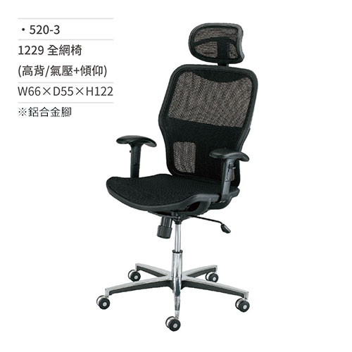 高級網椅/辦公椅(高背/有扶手/氣壓+傾仰)520-3 W66×D55×H122