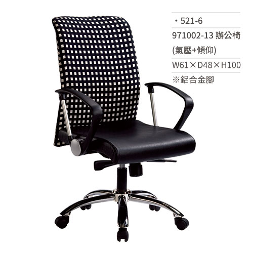 優質布料椅/辦公椅(鋁合金腳/有扶手/氣壓+傾仰)521-6 W61×D48×H100