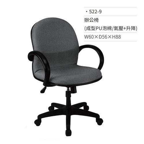 優質布料椅/辦公椅(成型PU泡棉/有扶手/氣壓+升降)522-9 W60×D56×H88