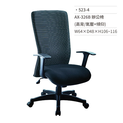 優質布料椅/辦公椅(高背/有扶手/氣壓+傾仰)523-4 W64×D48×H106~116