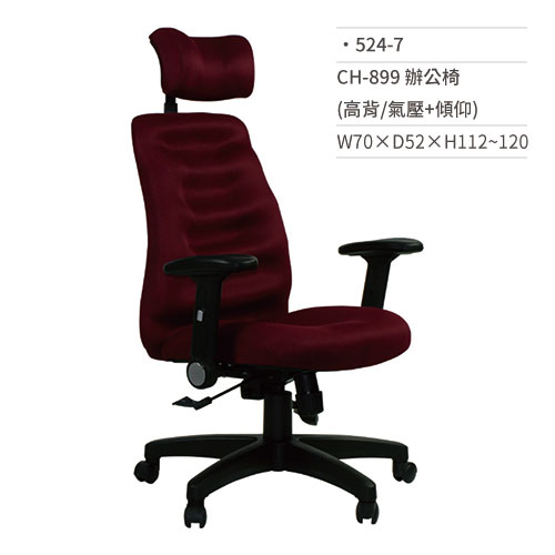 優質布料椅/辦公椅(高背/有扶手/氣壓+傾仰)524-7 W70×D52×H112~120