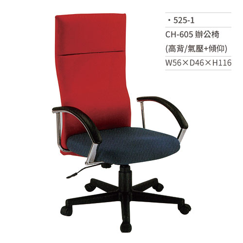 優質布料椅/辦公椅(高背/有扶手/氣壓+傾仰)525-1 W56×D46×H116