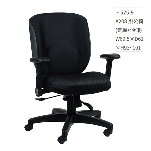 優質布料椅/辦公椅(有扶手/氣壓+傾仰)525-9 W69.5×D61×H93~101