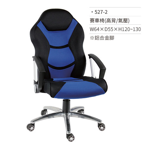 優質布料椅/賽車椅(高背/鋁合金腳/有扶手/氣壓)527-2 W64×D55×H120~130