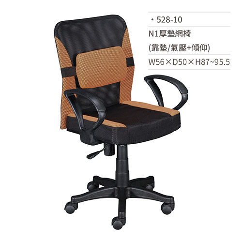 厚墊網椅/辦公椅(靠墊/有扶手/氣壓+傾仰)528-10 W56×D50×H87~95.5