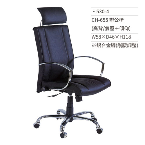 皮面辦公椅(高背/鋁合金腳/護腰調整/有扶手/氣壓+傾仰)530-4 W58×D46×H118