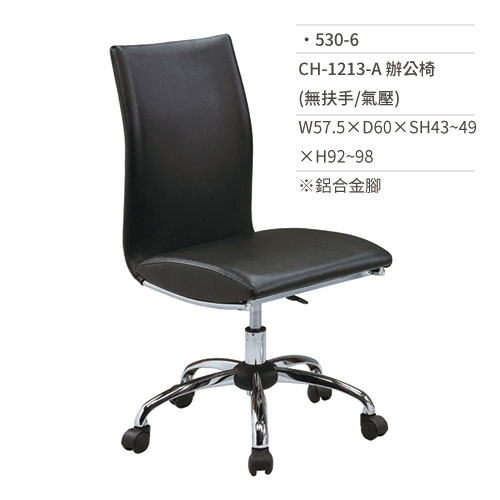 皮面辦公椅(鋁合金腳/無扶手/氣壓)530-6 W57.5×D60×SH43~49×H92~98