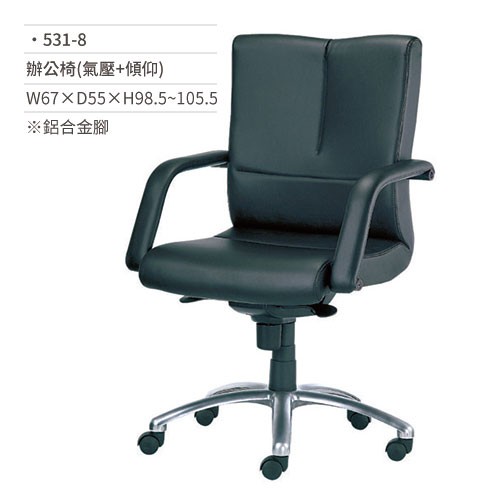 皮面辦公椅(鋁合金腳/有扶手/氣壓+傾仰)531-8 W67×D55×H98.5~105.5
