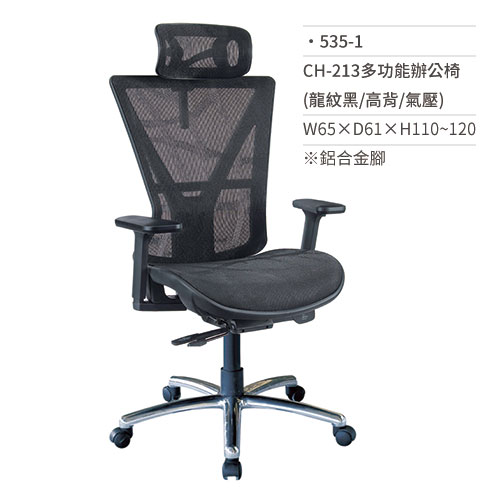 高級網椅/多功能辦公椅(龍紋黑/高背/鋁合金腳/有扶手/氣壓)535-1 W65×D61×H110~120
