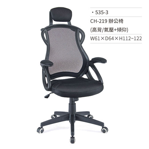 高級網椅/辦公椅(高背/有扶手/氣壓+傾仰)535-3 W61×D64×H112~122
