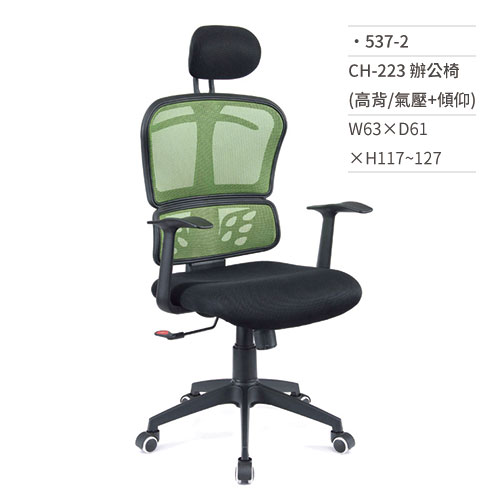 高級網椅/辦公椅(高背/有扶手/氣壓+傾仰)537-2 W63×D61×H117~127