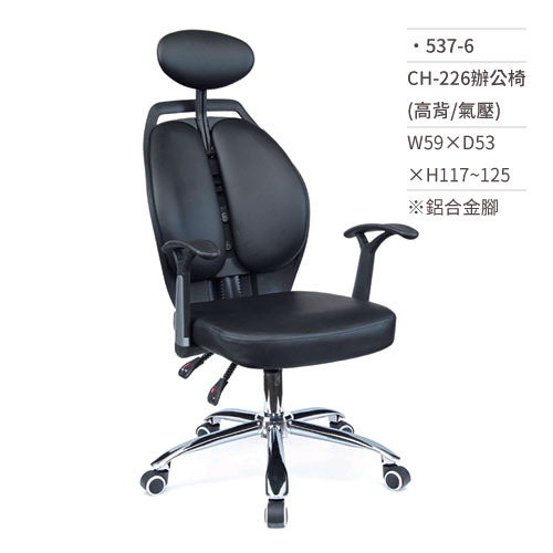 皮面辦公椅(高背/鋁合金腳/有扶手/氣壓)537-6 W59×D53×H117~125