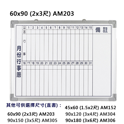 群策 AM203 磁鋁框磁性行事曆白板 2x3尺
