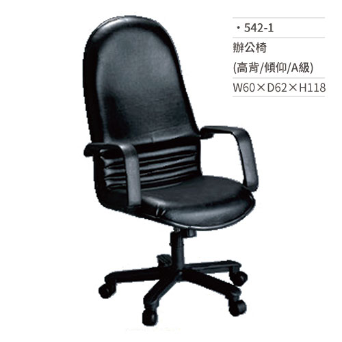皮面辦公椅(高背/有扶手/傾仰/A級)542-1 W60×D62×H118