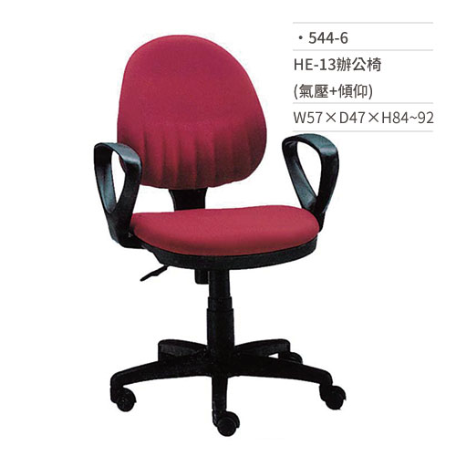高級辦公椅(紅/有扶手/氣壓+傾仰)544-6 W57×D47×H84~92