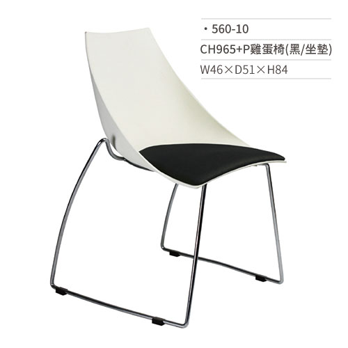 雞蛋椅/訪客/會議/辦公椅(白黑/坐墊/固定式/無扶手)560-10 W46×D51×H84
