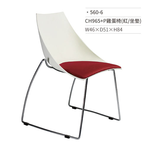 雞蛋椅/訪客/會議/辦公椅(白紅/坐墊/固定式/無扶手)560-6 W46×D51×H84