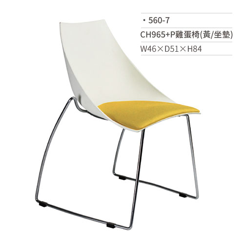 雞蛋椅/訪客/會議/辦公椅(白黃/坐墊/固定式/無扶手)560-7 W46×D51×H84