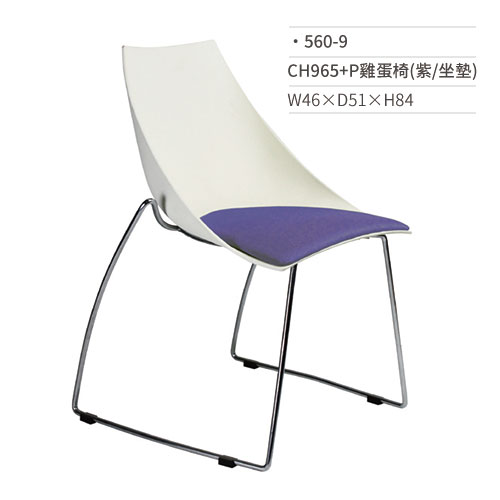 雞蛋椅/訪客/會議/辦公椅(白紫/坐墊/固定式/無扶手)560-9 W46×D51×H84