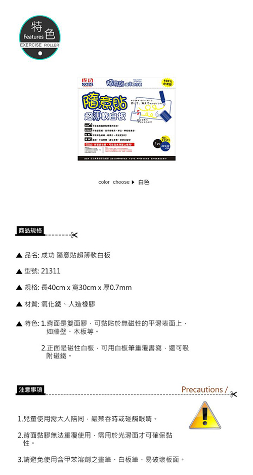 SUCCESS 成功 NO.21311隨意貼超薄軟白板 30x40cm