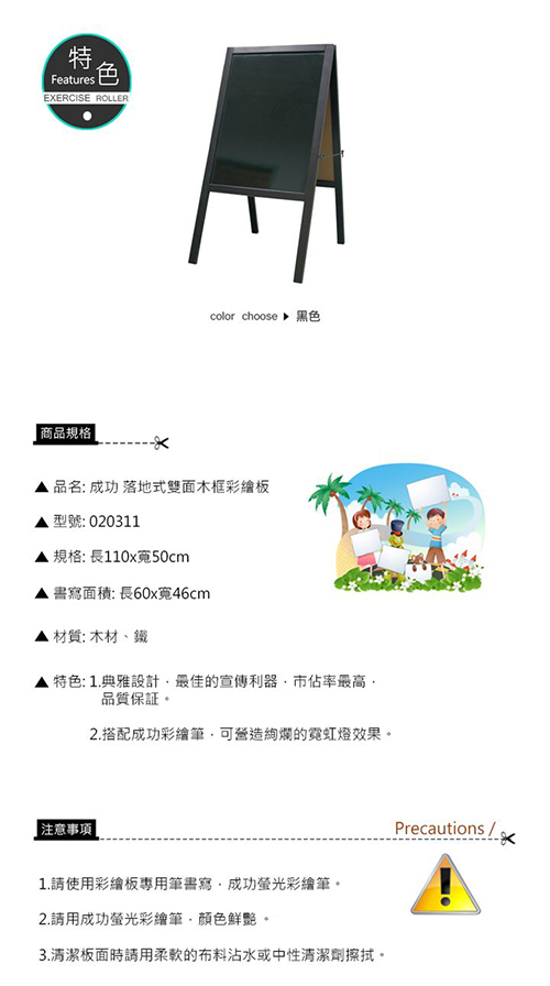 SUCCESS 成功 NO.020311 落地式雙面木框彩繪板/黑板/廣告板 110x50cm