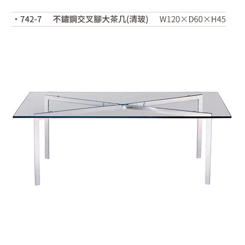 不鏽鋼交叉腳大茶几(清玻) 742-7 W120×D60×H45 (請來電詢價)