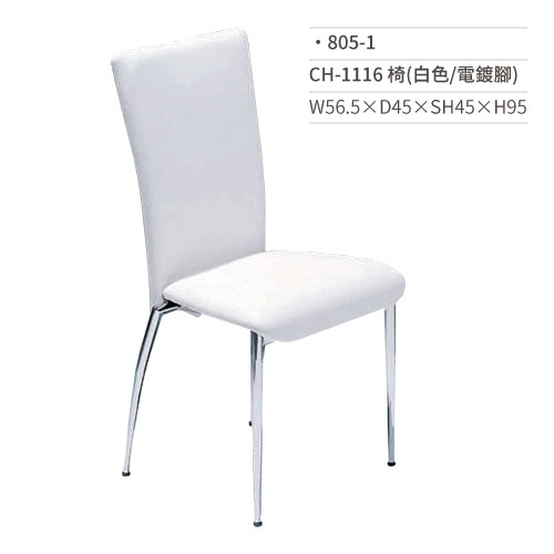 CH-1116 餐椅(白色/電鍍腳)805-1 W56.5×D45×SH45×H95