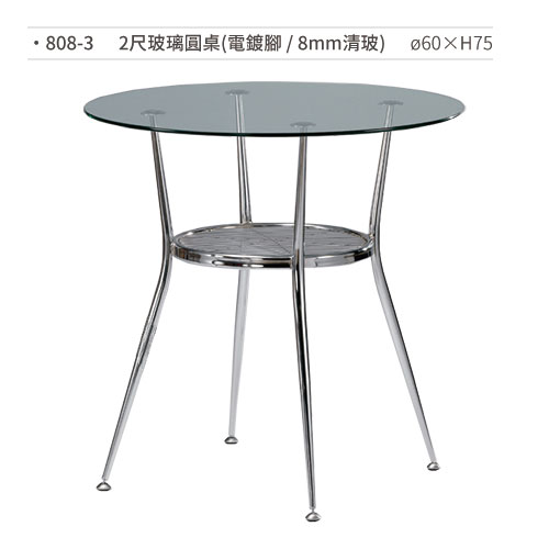 2尺玻璃圓桌(電鍍腳/8mm清玻)808-3 ø60×H75