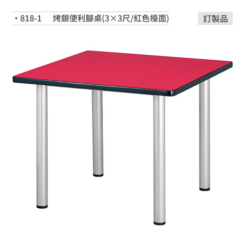 烤銀便利腳桌(3×3尺/紅色檯面)訂製品 818-1