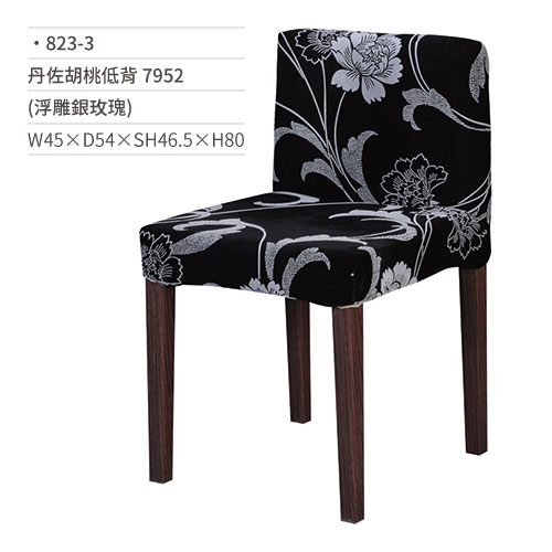 丹佐胡桃低背椅 7952(浮雕銀玫瑰) 823-3 W45×D54×SH46.5×H80