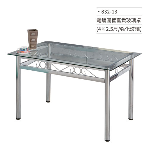 電鍍圓管富貴玻璃桌(4×2.5尺/強化玻璃) 832-13