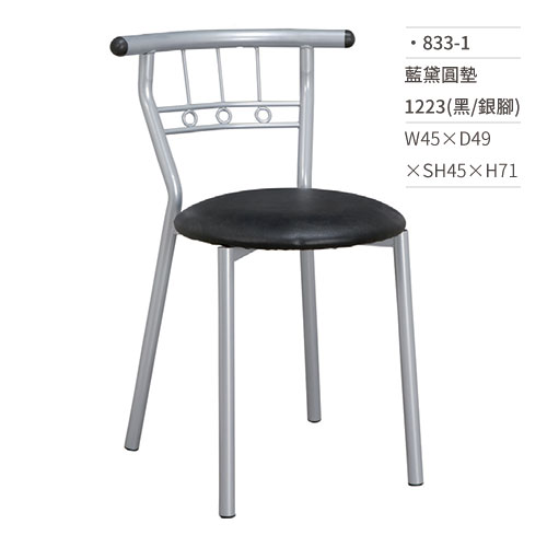 藍黛圓墊餐椅 1223(黑/銀腳) 833-1 W45×D49×SH45×H71