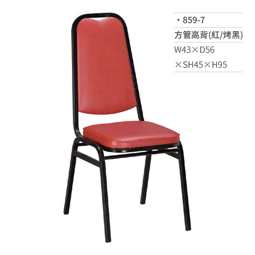 方管高背餐椅(紅/烤黑) 859-7 W43×D56×SH45×H95