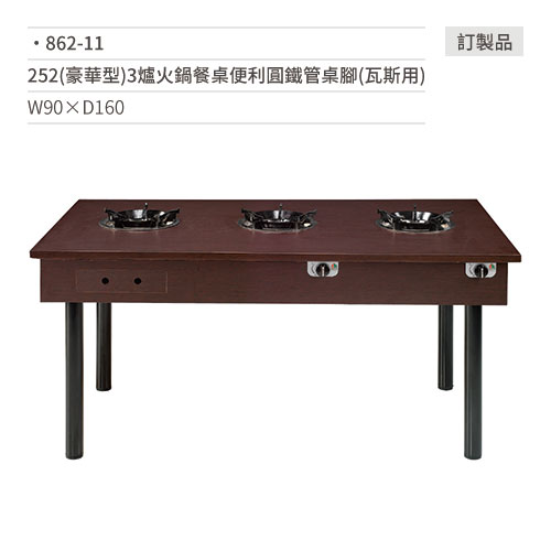 252豪華型3爐火鍋桌 (便利圓鐵管桌腳/瓦斯用) 862-11 訂製品
