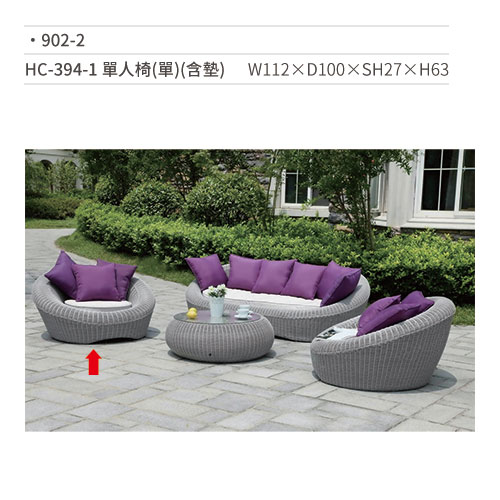 HC-394-1 單人椅(單張/含墊) 902-2 W112×D100×SH27×H63