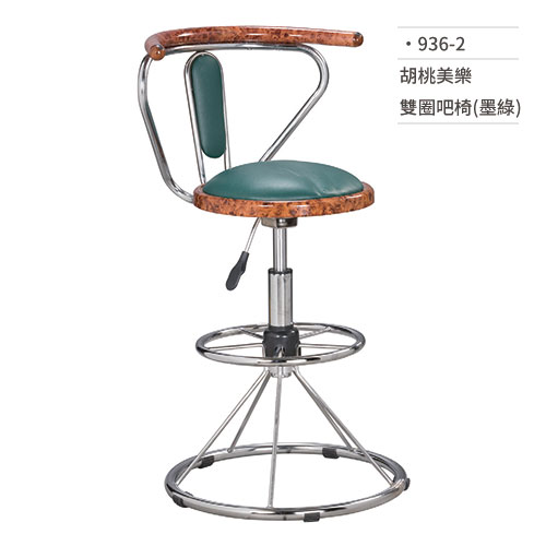 胡桃美樂雙圈吧椅(墨綠) 936-2
