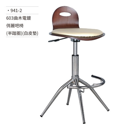 603曲木電鍍俏麗吧椅 (半踏圈/白皮墊) 941-2