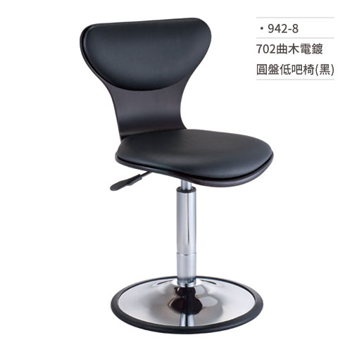 702曲木電鍍圓盤低吧椅 (黑) 942-8