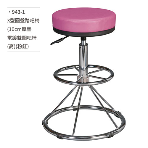 X型圓盤踏吧椅(10cm厚墊電鍍雙圈吧椅/高/粉紅) 943-1