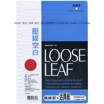 NANKUAN 南冠 18K26孔 壓線空白活頁內紙/筆記本內頁/活頁紙 N18895