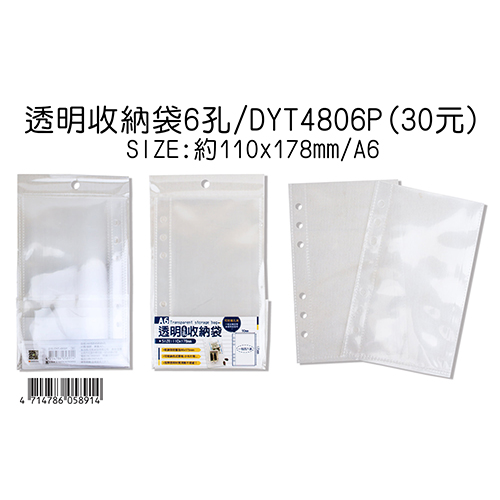 DOW DEAN 豆點 A6 6孔透明收納袋DYT-4806P 4入